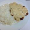 • Lay chicken thighs into the bottom of a 4-quart slow cooker.